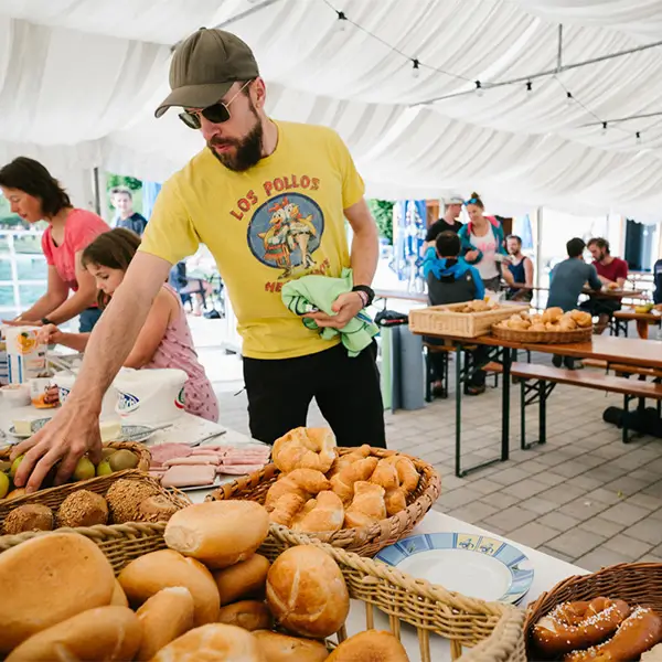 Beim Kletterfestival wird es jeden Morgen ein reichhaltiges Frühstücksbuffet geben. Für Donnerstagabend haben wir Chili geplant. Am Freitag tischen wir Makrelen vom Grill, ein Nudelbuffet mit diversen Komponenten und ein Salat-Buffett auf. Am letzten Abend, Samstag, dürft ihr euch auf ein Kartoffelbuffet, wieder mit diversen Komponenten, und natürlich auch wieder auf Salate freuen. Zusätzlich wird es das tägliche Kioskangebot geben.